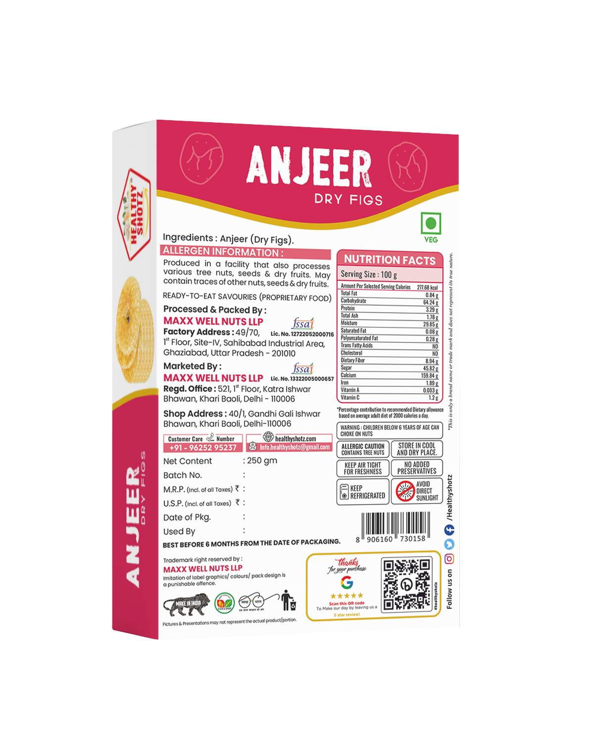 Healthy Shotz Anjeer Dry Fig (Fine) 250gram